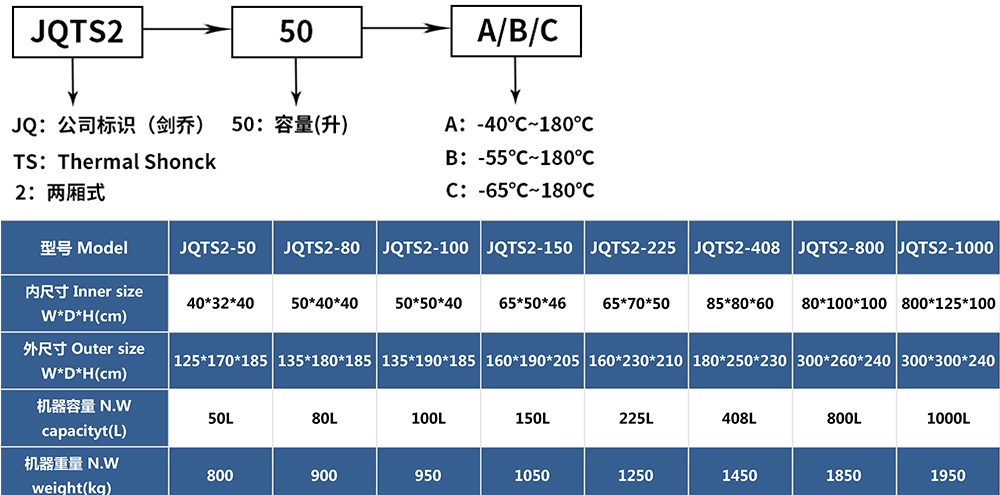 兩廂式冷熱沖擊試驗(yàn)箱型號(hào)命名及參數(shù)表