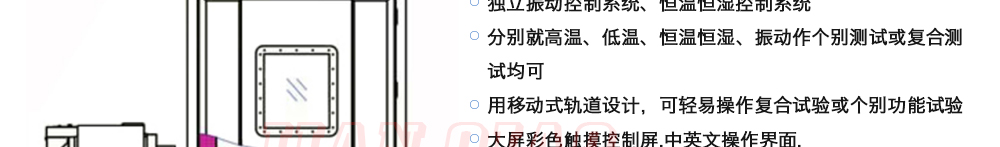 用途:三綜合環(huán)境試驗箱主要是試驗箱和振動試驗系統(tǒng)的綜合,試驗時將溫度、濕度、振動(高溫或低溫),(正弦振動或隨機振動)以及電應(yīng)力按規(guī)定的周期綜合在同一氣候試驗箱中施加到