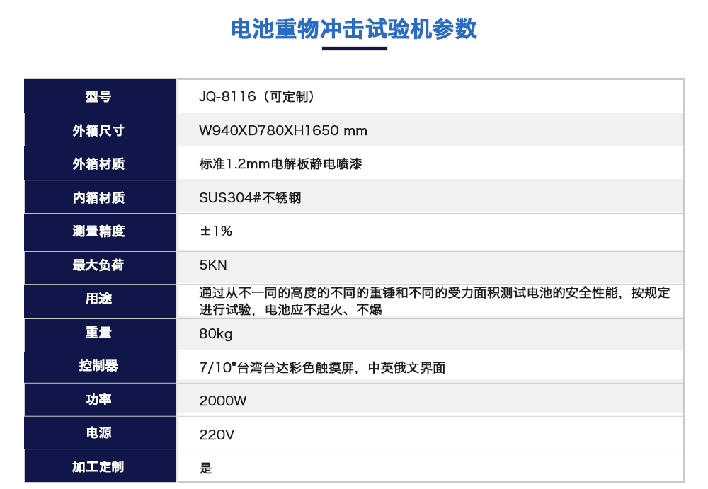 電池重物沖擊試驗機