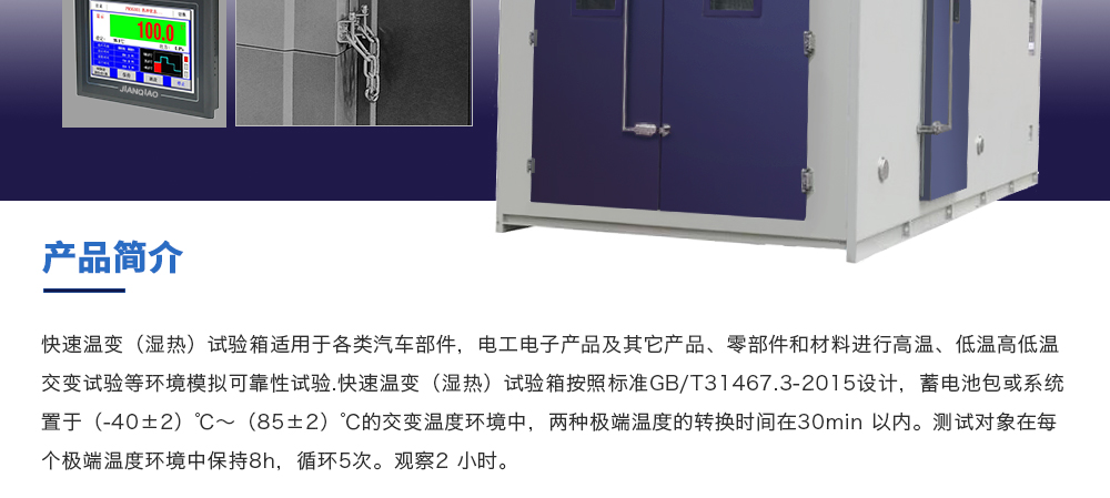 用途:快速溫變(濕熱)試驗(yàn)箱適用于各類汽車部件,電工電子產(chǎn)品及其它產(chǎn)品、零部件和材料進(jìn)行高溫、低溫高低溫交變?cè)囼?yàn)等環(huán)境模擬可靠性試驗(yàn).快速溫變(濕熱)試驗(yàn)箱按照標(biāo)準(zhǔn)GB/T31