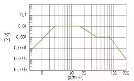 隨機(jī)振動(dòng)試驗(yàn)具體測(cè)試方法《GB/T 4857.23-2012》中有介紹,這里只介紹三個(gè)力學(xué)條件量值功率譜密度 (PSD)、加速度均方根 (Grms) 和振動(dòng)時(shí)間。國(guó)內(nèi)外通過采集運(yùn)輸數(shù)據(jù),利用統(tǒng)計(jì)學(xué)制定出隨機(jī)振動(dòng)譜。以ASTM D4169-08為例,如圖: