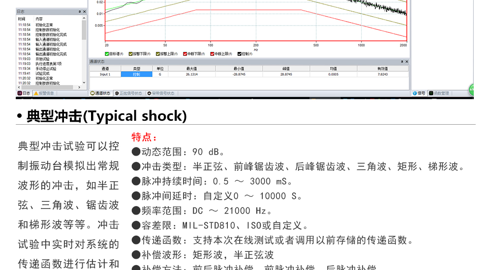 用途:正弦試驗可以控制振動臺實現定頻(駐留)、掃頻等振動試驗。控制算法中采用了跟蹤濾波的幅值以及相位檢測算法,可以實現對控制信號的準確反饋以及實時的閉環控制。